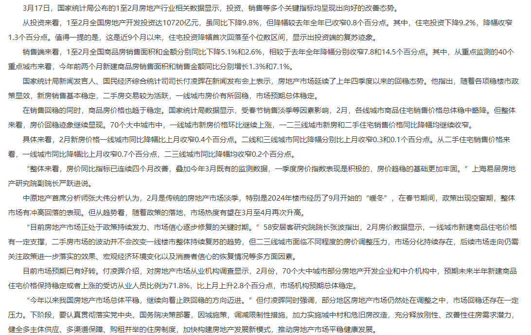 多項指標好轉 房地產(chǎn)市場延續(xù)回穩(wěn)態(tài)勢