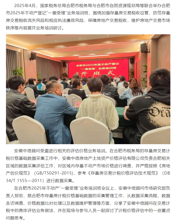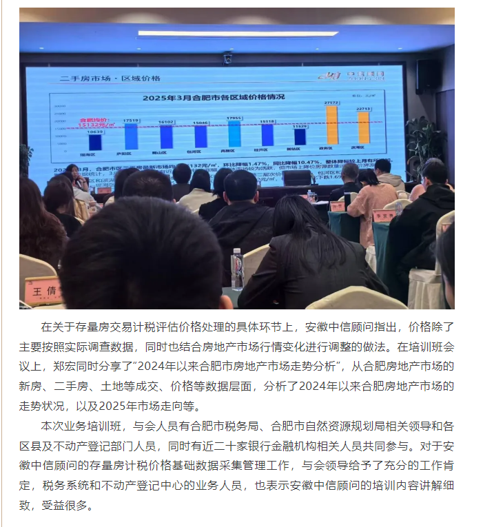 中信顧問受邀參與“合肥市2025年不動產登記‘一窗受理’業務培訓班”,進行評估業務培訓及房地產市場形勢分享