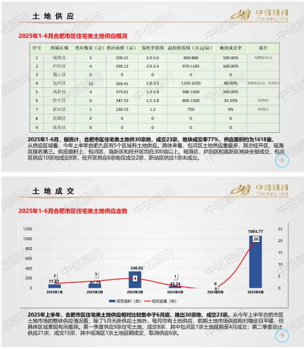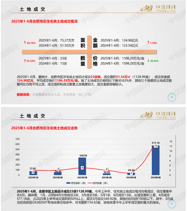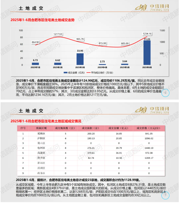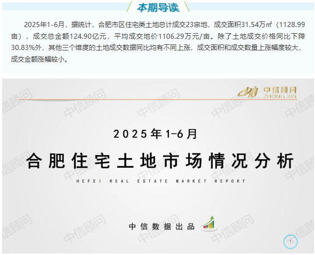 土地市場(chǎng) | 2025年1-6月,合肥住宅用地成交23宗1129畝,平均地價(jià)1106萬元/畝