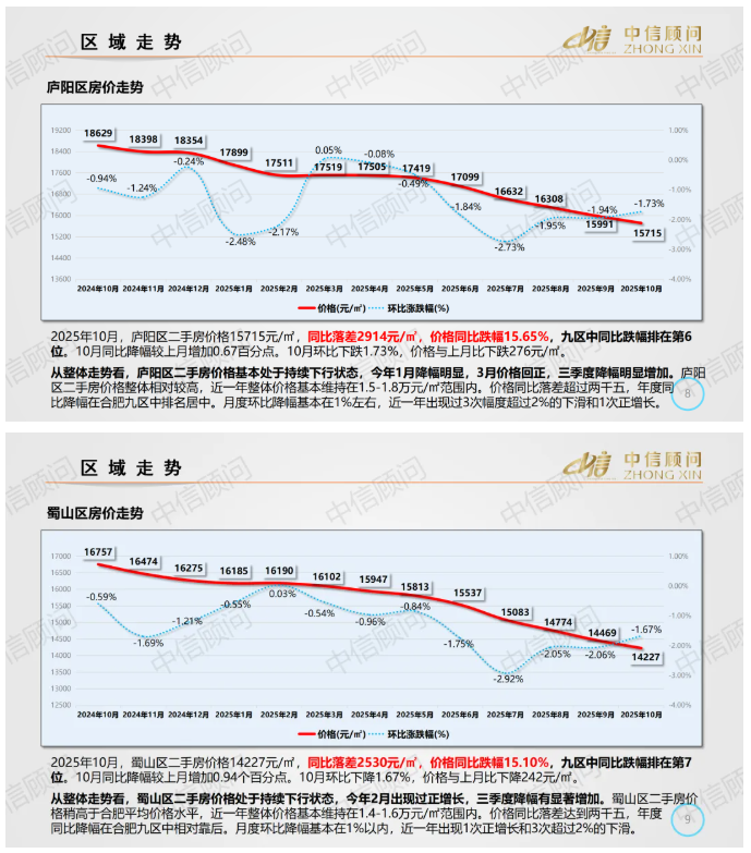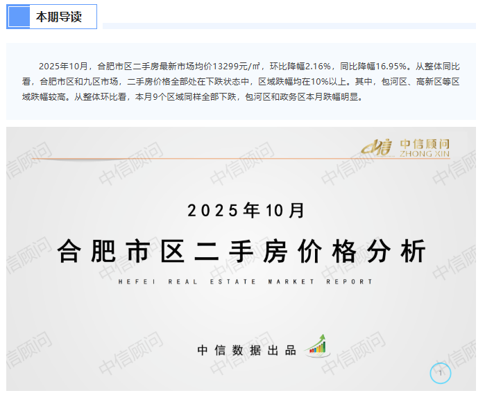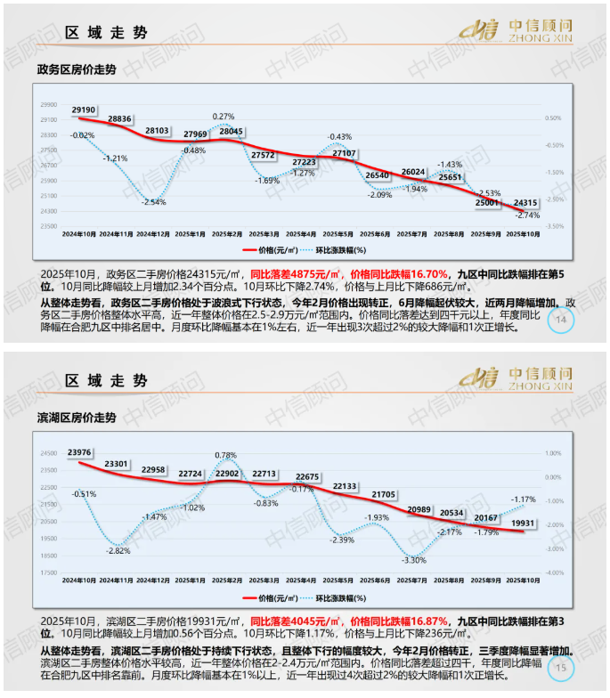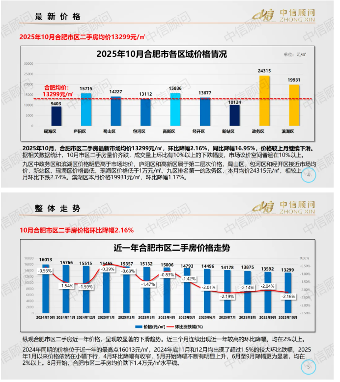 二手房市場 | 2025年10月,合肥住宅均價1.33萬元/㎡,環比下降2.16%,同比下降16.95%